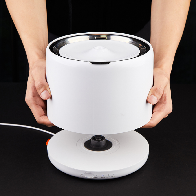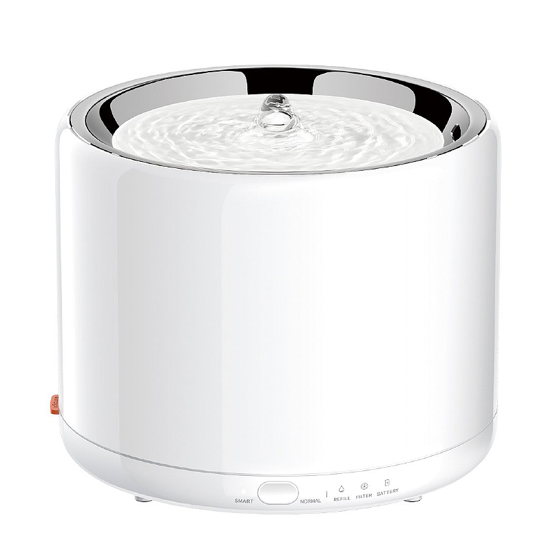 従来の浄水機能と噴水式の循環はそのままに、より静かなポンプを搭載した新モデル。ステンレススチール性のウォータータンク、トライタン製のトレイでより衛生的に。非常電源システムにより、万が一の停電時にも単4電池5本(別売)で約7日間作動します。