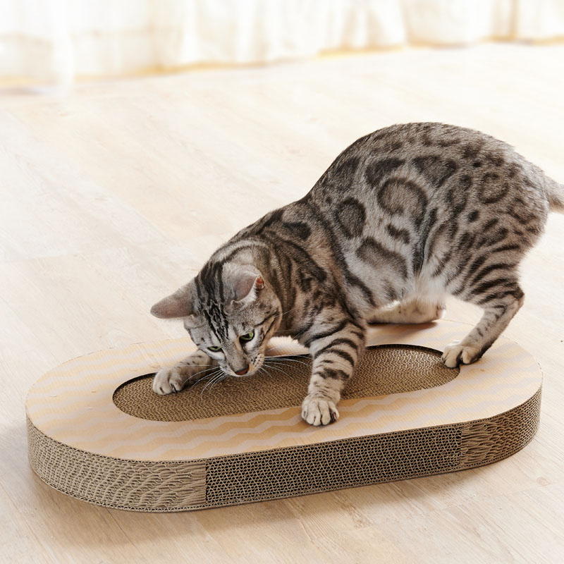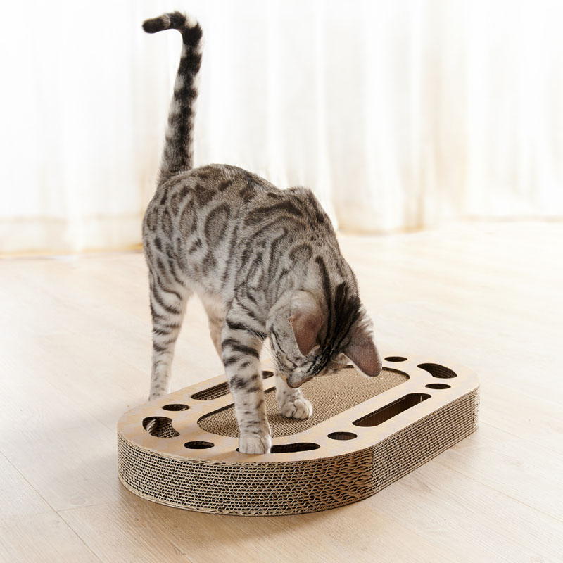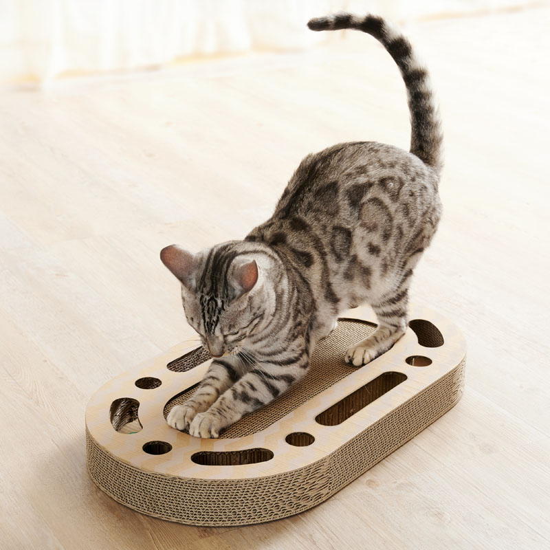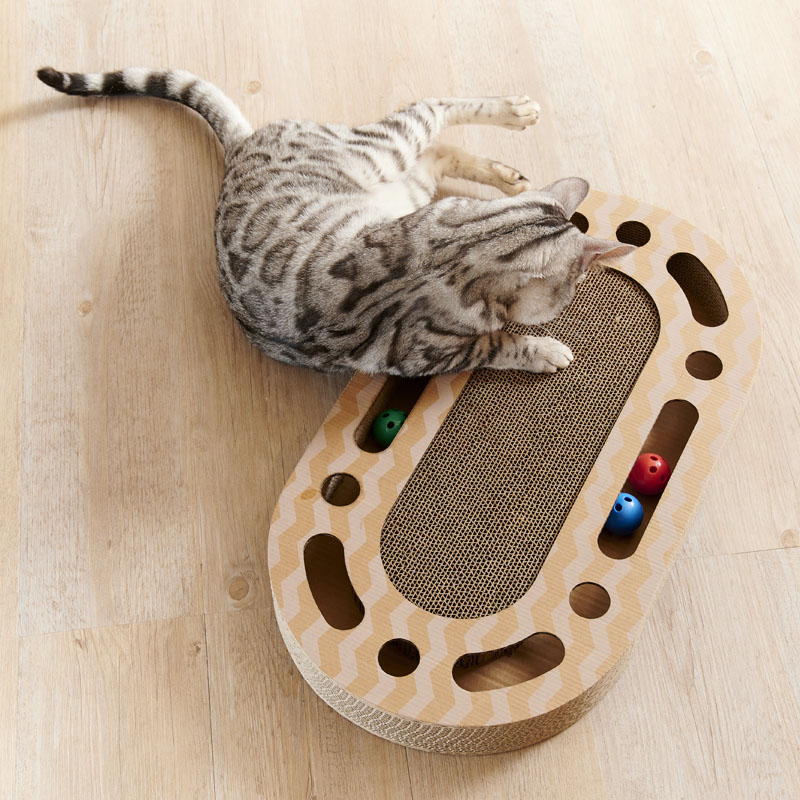 穴の中のボールに夢中、五感を刺激する爪とぎ付きおもちゃ
