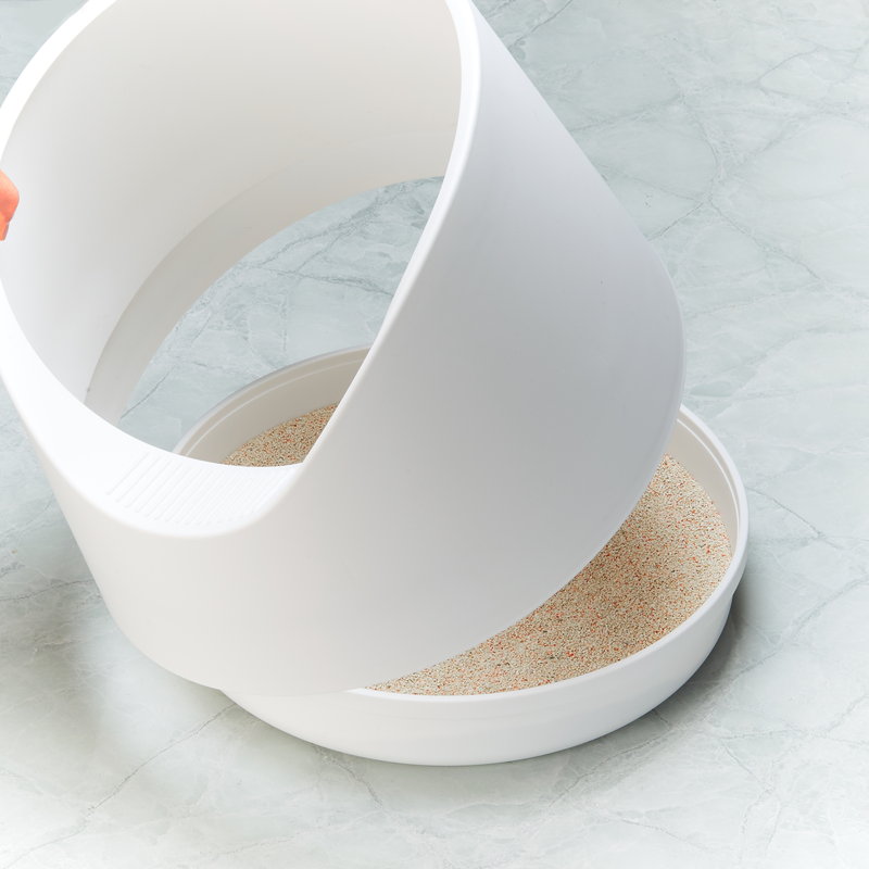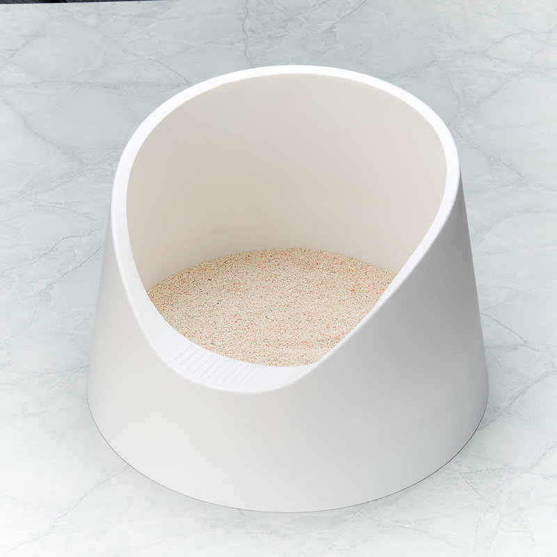 オープンタイプで通気性に優れています。どんな体型の愛猫でも使用できる、清潔で快適なトイレです。特殊な抗菌素材で加工。
