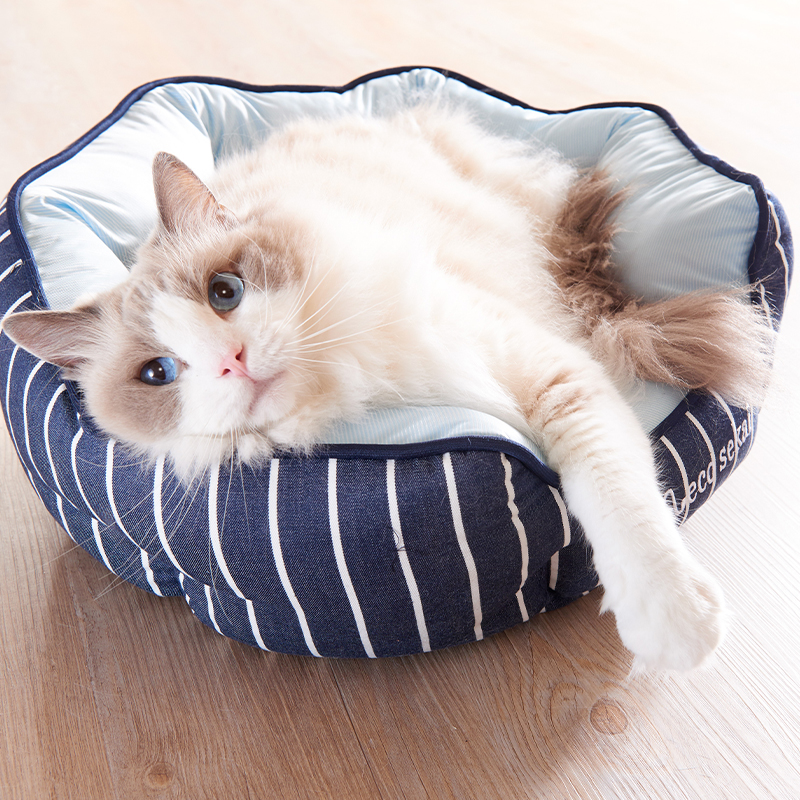 接触冷感&デニムストライプ キャットラウンドベッド