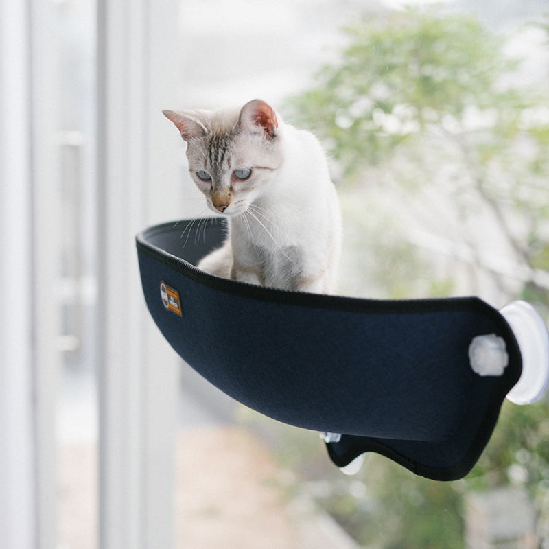 イージーマウントウィンドウベッドは、アメリカ・コロラド州に拠点をおき、ペットが心地よく過ごすためのユニークな商品を開発する「K&H Pet Products」から、吸盤で窓にくっつけられるハンディーな猫ベッドが登場! 窓に張り付けるタイプなので、猫さんの成長に合わせて高さを変えられたり、猫タワーと違い場所をとったりインテリアの邪魔にもなりません。昼寝をしたり、外を見る習性の猫さんにピッタリ。吸盤がリニューアルされ、さらに強力になりました。
