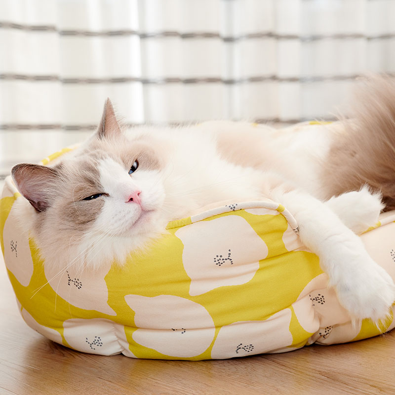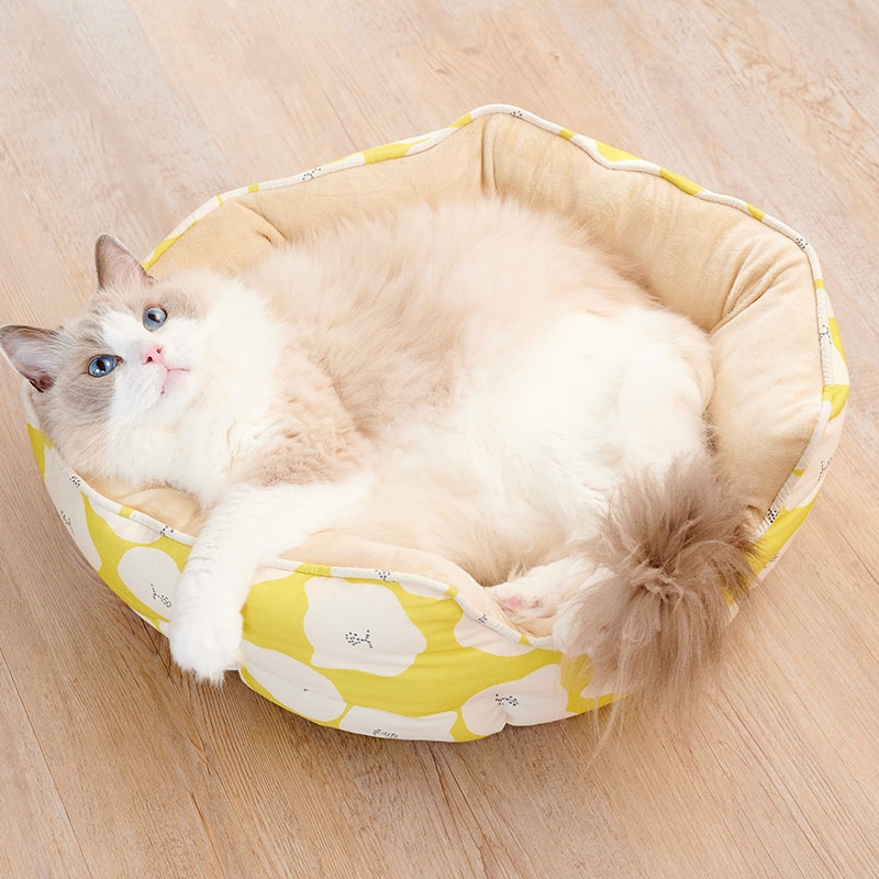 北欧スタイルの猫柄の生地がかわいいキャットベッド