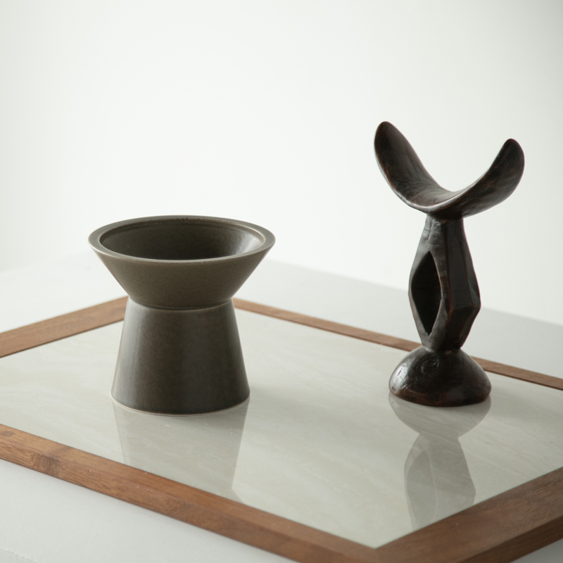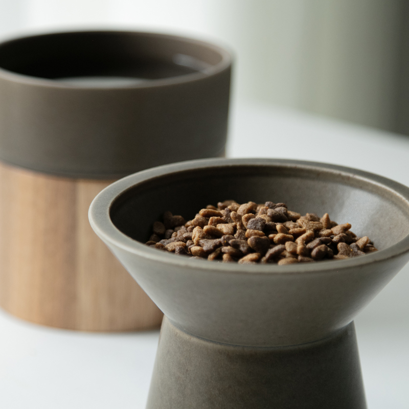 猫への負担をできるだけ減らすため、高さ(13cm)や形状を猫目線で設計。フードがこぼれにくく食べやすいよう、器の深さや角度にもこだわりました。台座部分にしっかりと重みがあるため、安定感があって倒れにくいのも特長の一つ。