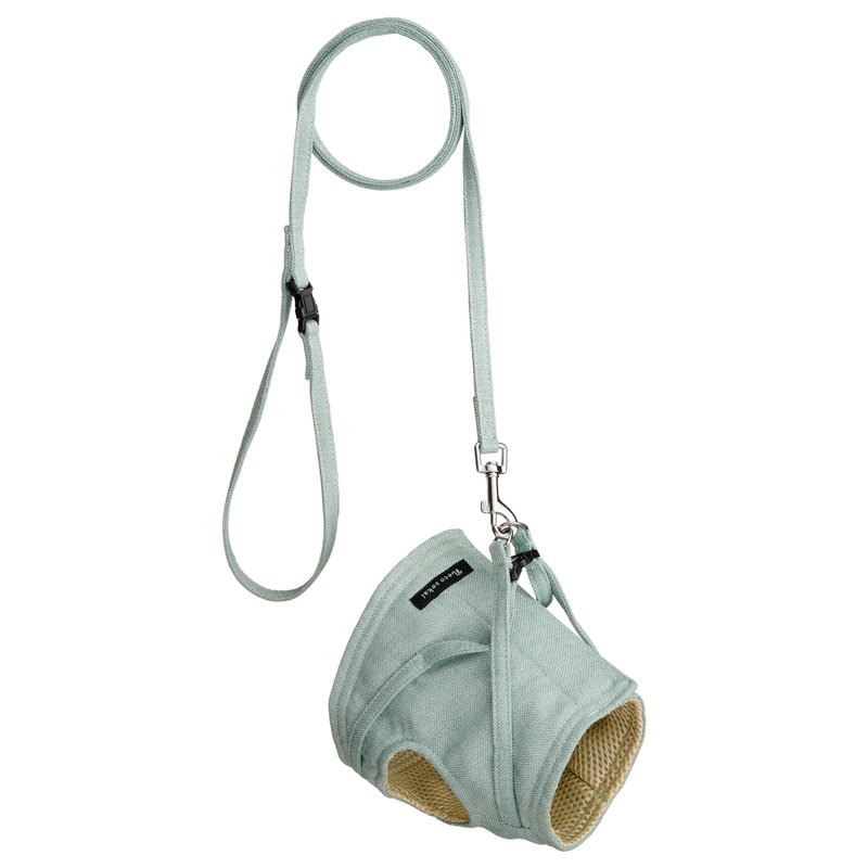 永く飽きのこない織りの表情が上品な生地を使用しています。どんな毛色にも似合う8色(シャンパン、カフェラテ、ベビーピンク、ラズベリー、セージグリーン、フォグブルー、サンドグレー、チャコールグレー)から選べる、飽きのこないナチュラルな色合い。落ち着きのあるカラーが大人っぽさも演出します。内側の素材には通気性がよく快適にフィットするメッシュ素材を採用。本体に縫い合わせたリードがしっかりと身体を支えてホールドします。脱着はベストのように着せて、軽くて安心の面ファスナーとバックルを止めるだけで簡単に脱着できます。金具でしっかりと止めることができるリードを付属。サイズは胴回り約33〜36 (cm)のSSサイズ、胴回り約36〜40 (cm)のSサイズ、胴回り約41〜45 (cm)のMサイズ、胴回り約46〜50 (cm)のLサイズの3サイズから選べます。いざというときのための防災グッズとしても。