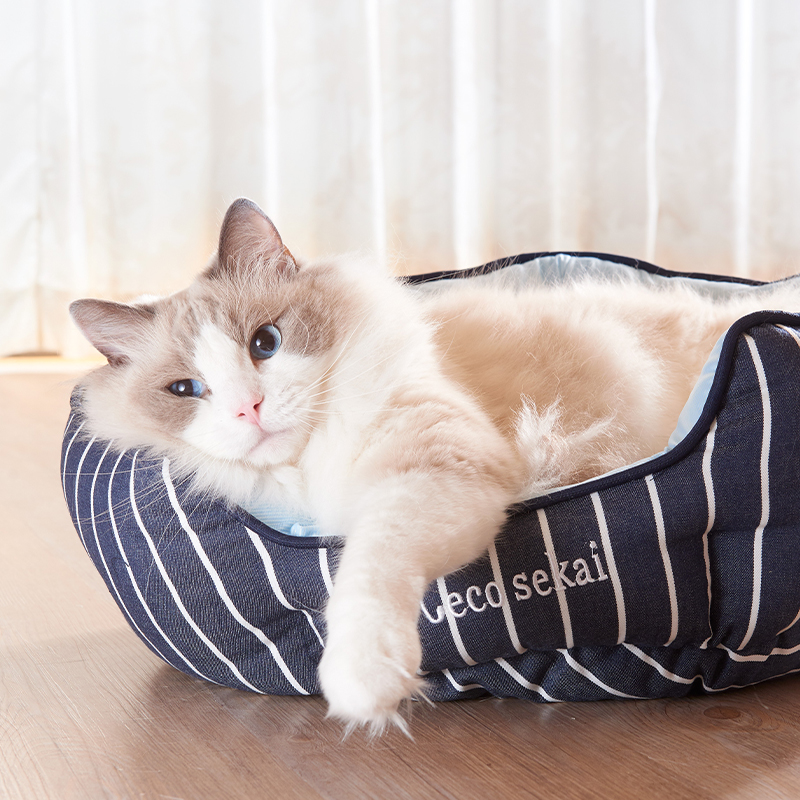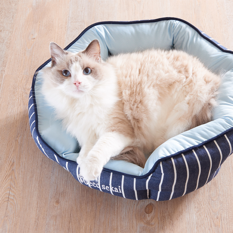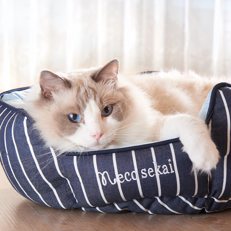 接触冷感&デニムストライプ キャットラウンドベッド