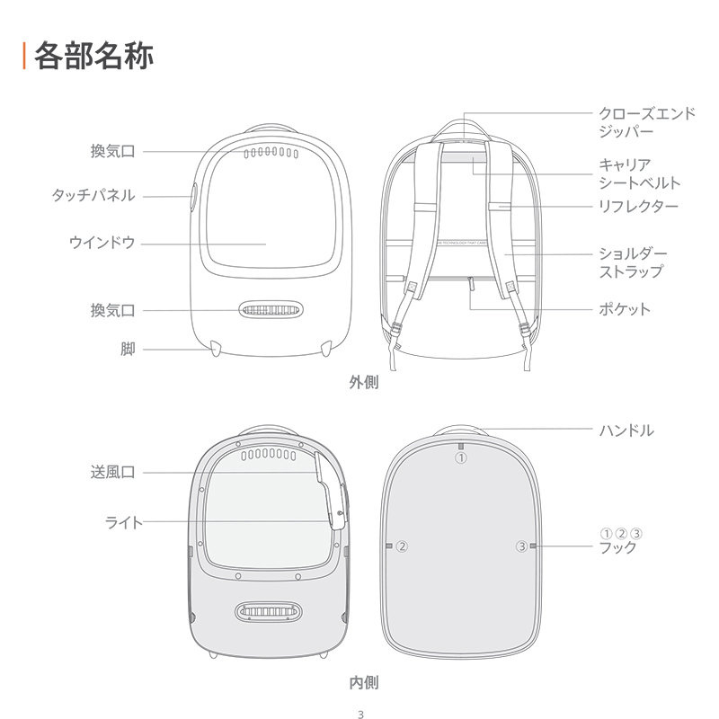 ●本製品はペット(犬・猫)用のキャリーバッグです。本来の用途以外には使用しないでください。