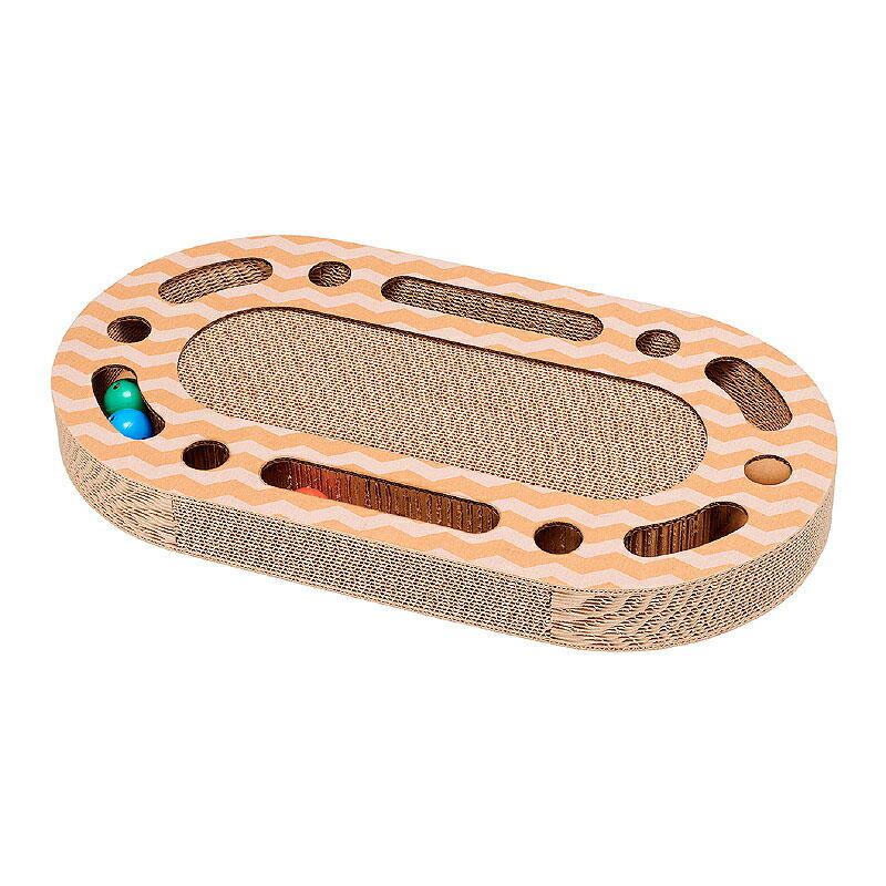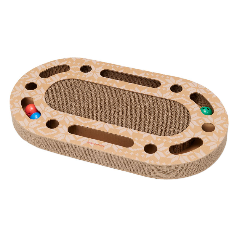穴の中のボールに夢中、五感を刺激する爪とぎ付きおもちゃ